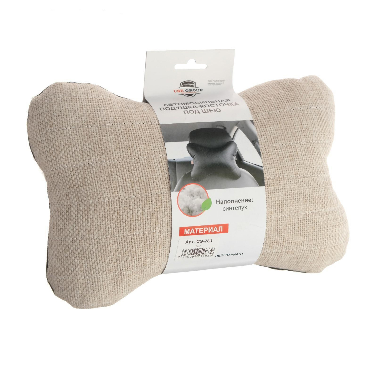 Подушка автомобильная, для шеи, лен, бежевый, 18х26 см 5267046