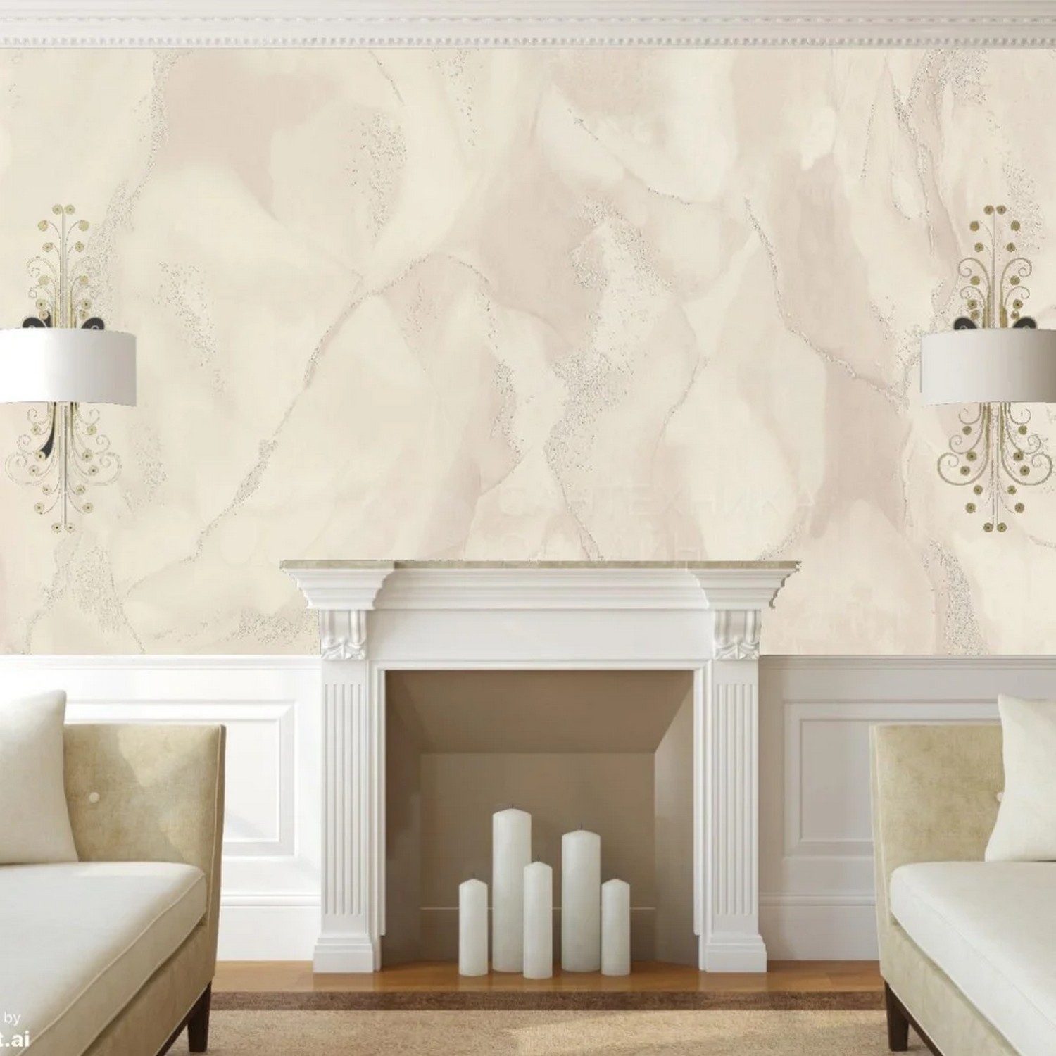 Фон коллекции «Fern» выполнен в спокойных пастельных тонах и имитирует текстуру рогожки, покрытую перламутром. Такое решение поддерживает основной мотив и придает всей коллекции атмосферу уюта и комфорта.