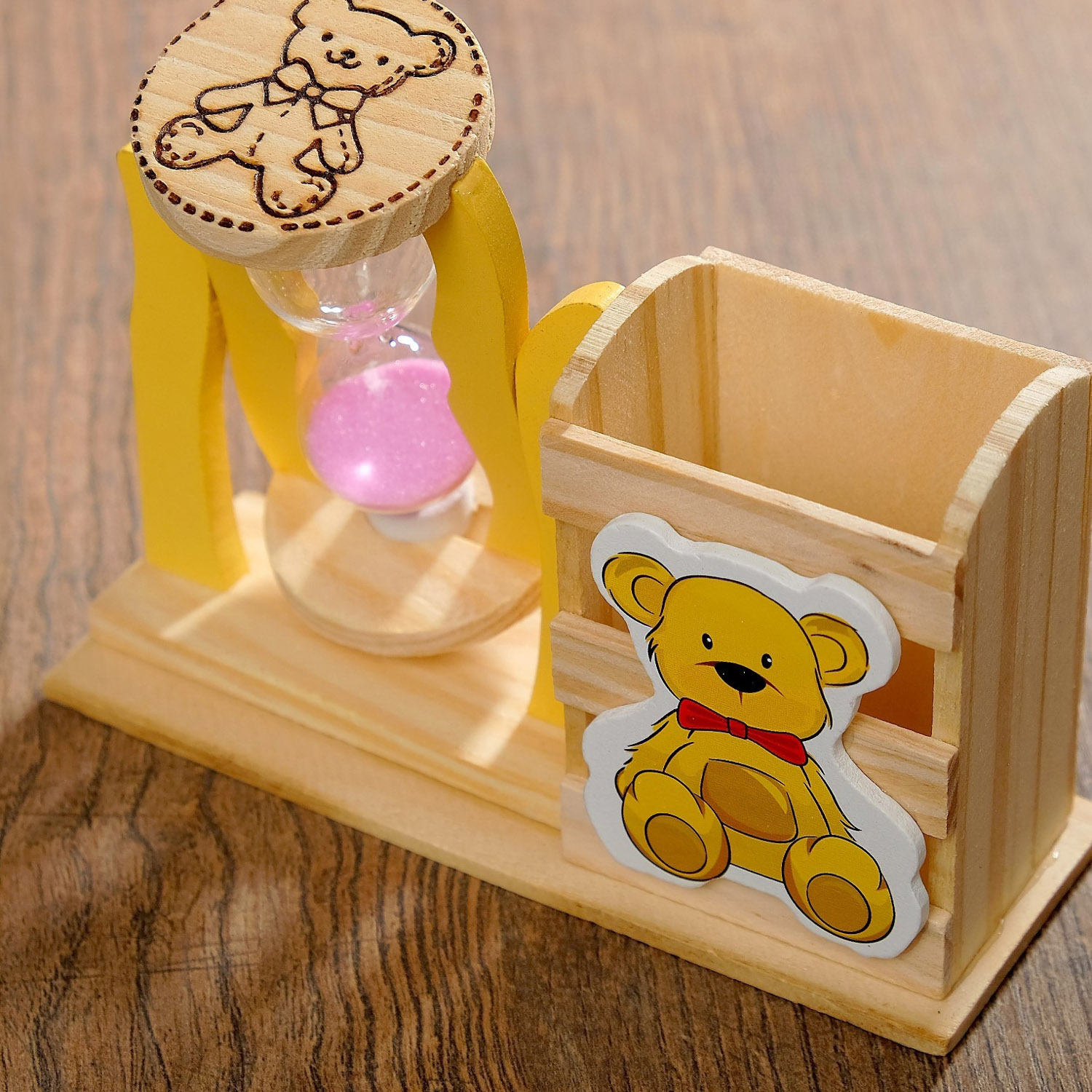 Песочные часы "Медвежонок", сувенирные, с карандашницей, 13.5 х 13.5 х 10 см, микс 3612384