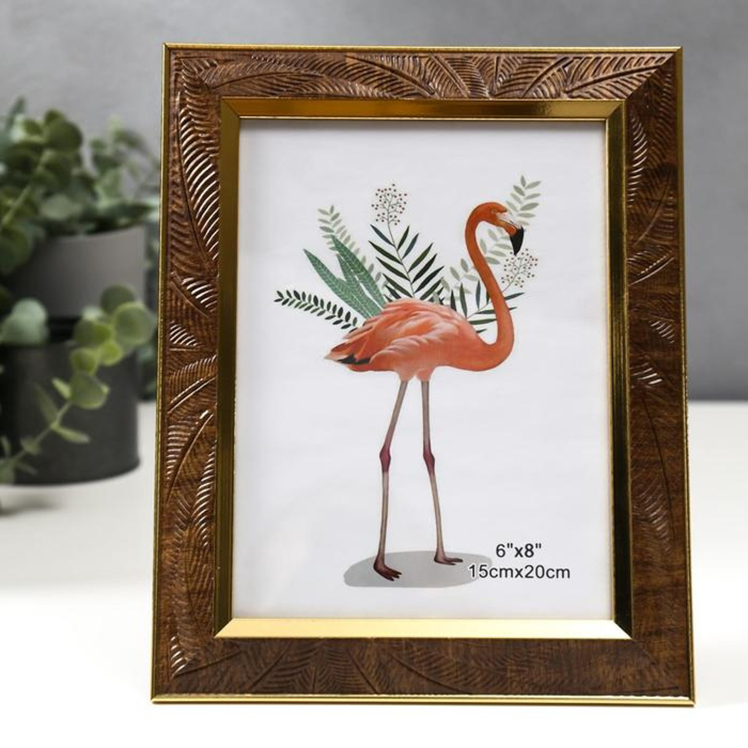 Фоторамка пластик 15х20 см "Листья на шоколаде, золотая двойная рамка" 24,7х19,8 см 5375934