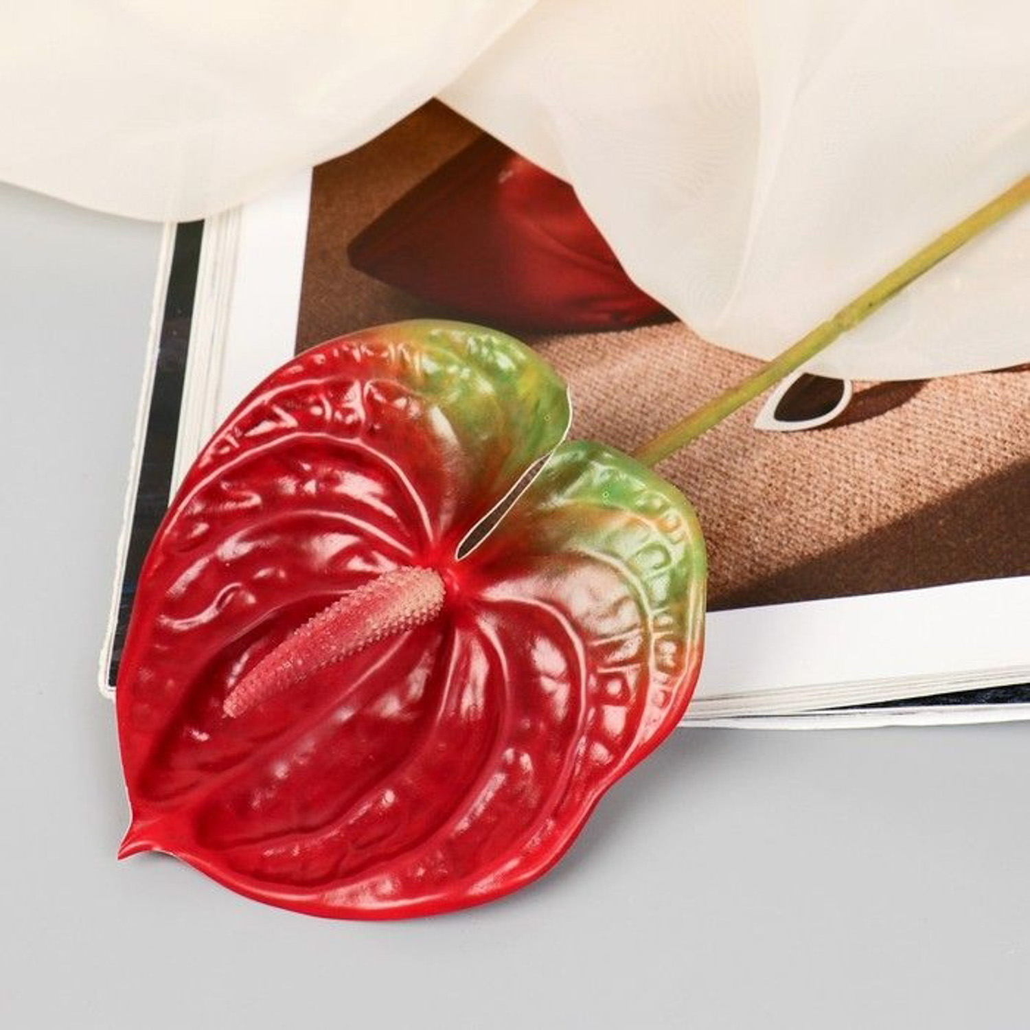 Цветы искусственные "Антуриум" 60 см, красный 7510196