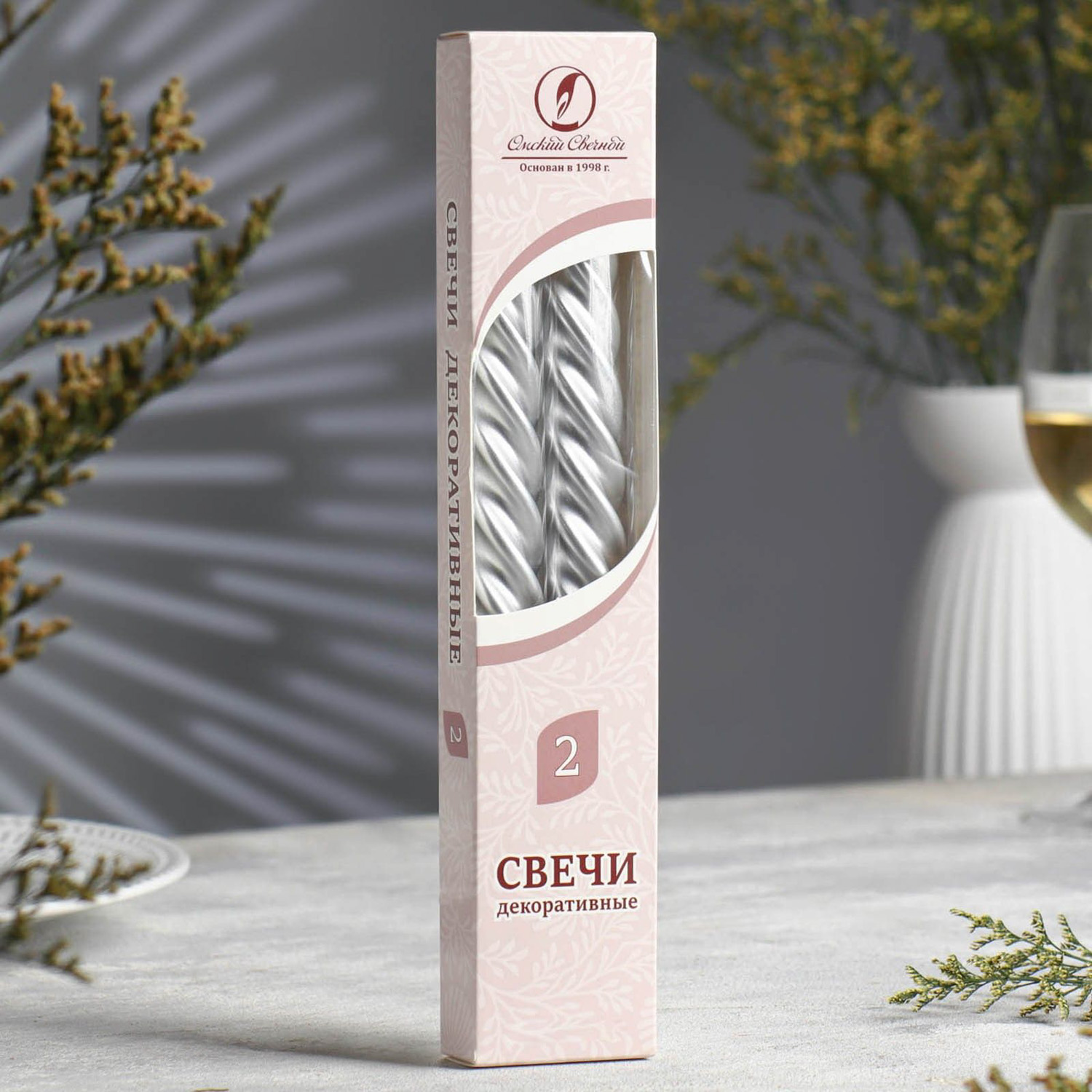Набор свечей витых, 2,3х 24,5 см, 5 ч, 50 г, 2 штуки, серебряный 1575422