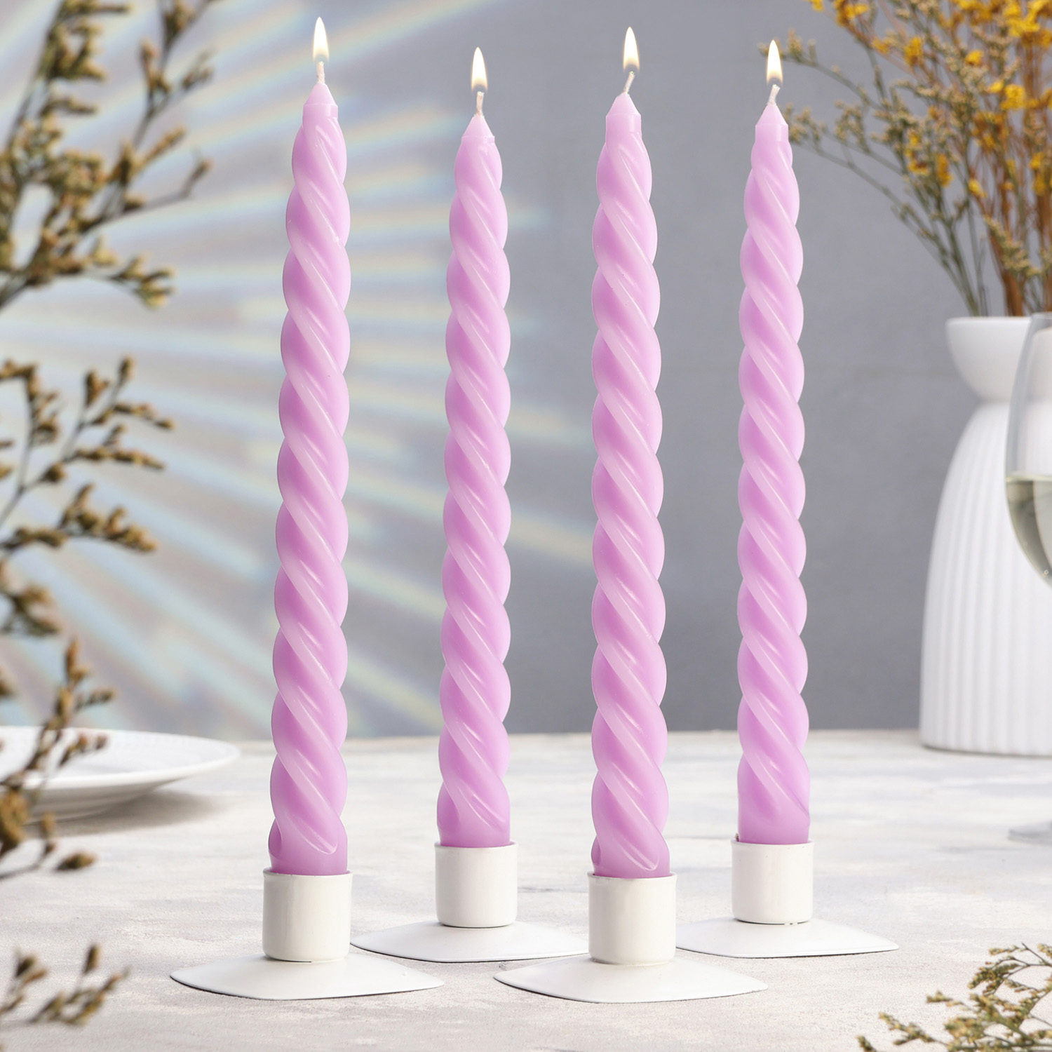 Набор свечей витых, 2,3х 24,5 см, 5 ч, 50 г, 4 штуки, сиреневый 7691003