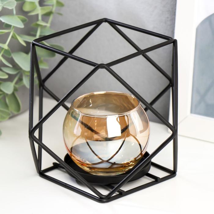 Подсвечник металл, стекло на 1 свечу "Квадраты и треугольники" 10х15х15 см 5150281