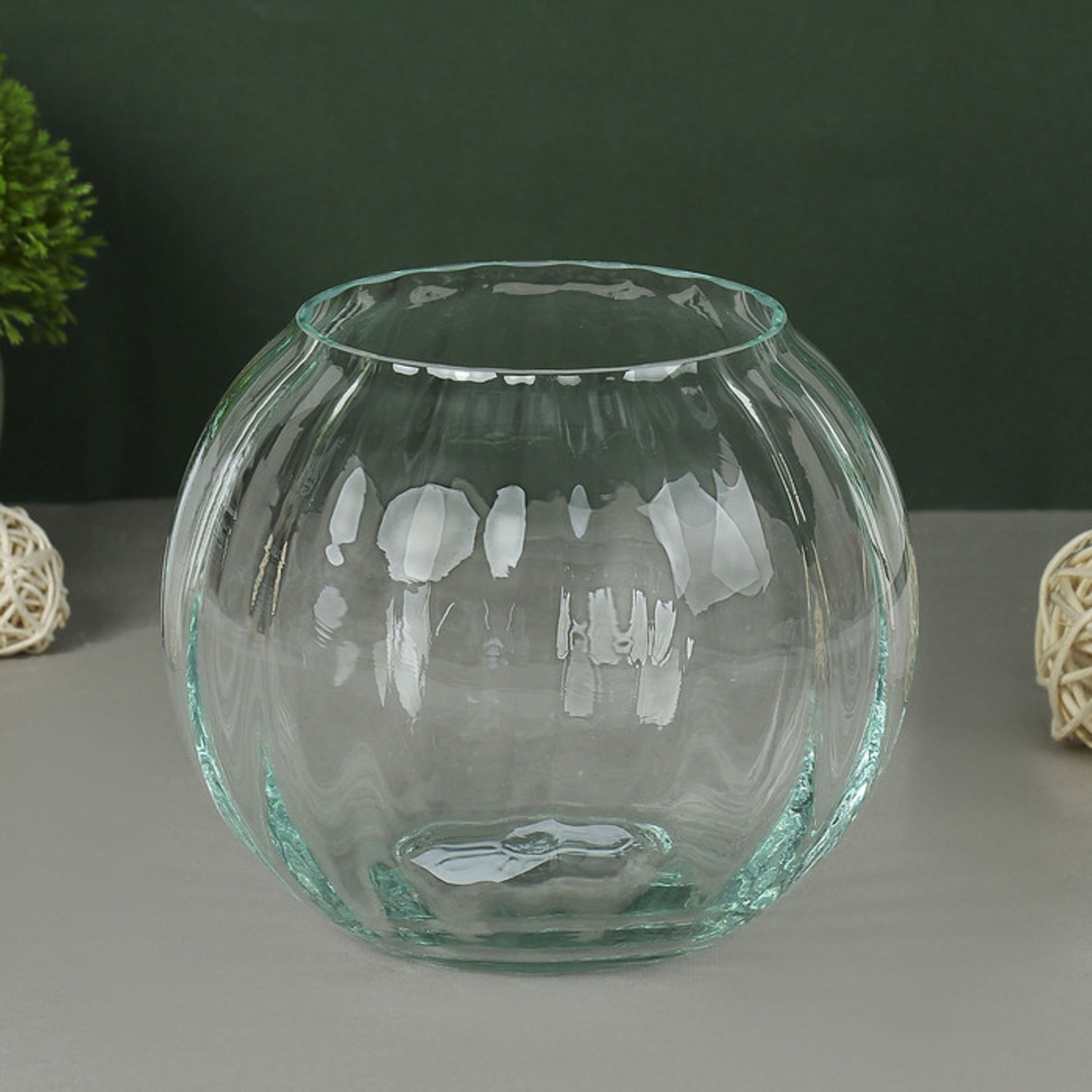 Ваза Шар 1.1 л, диаметр горла 8.5 см, 13.5х11 см, рифленое стекло