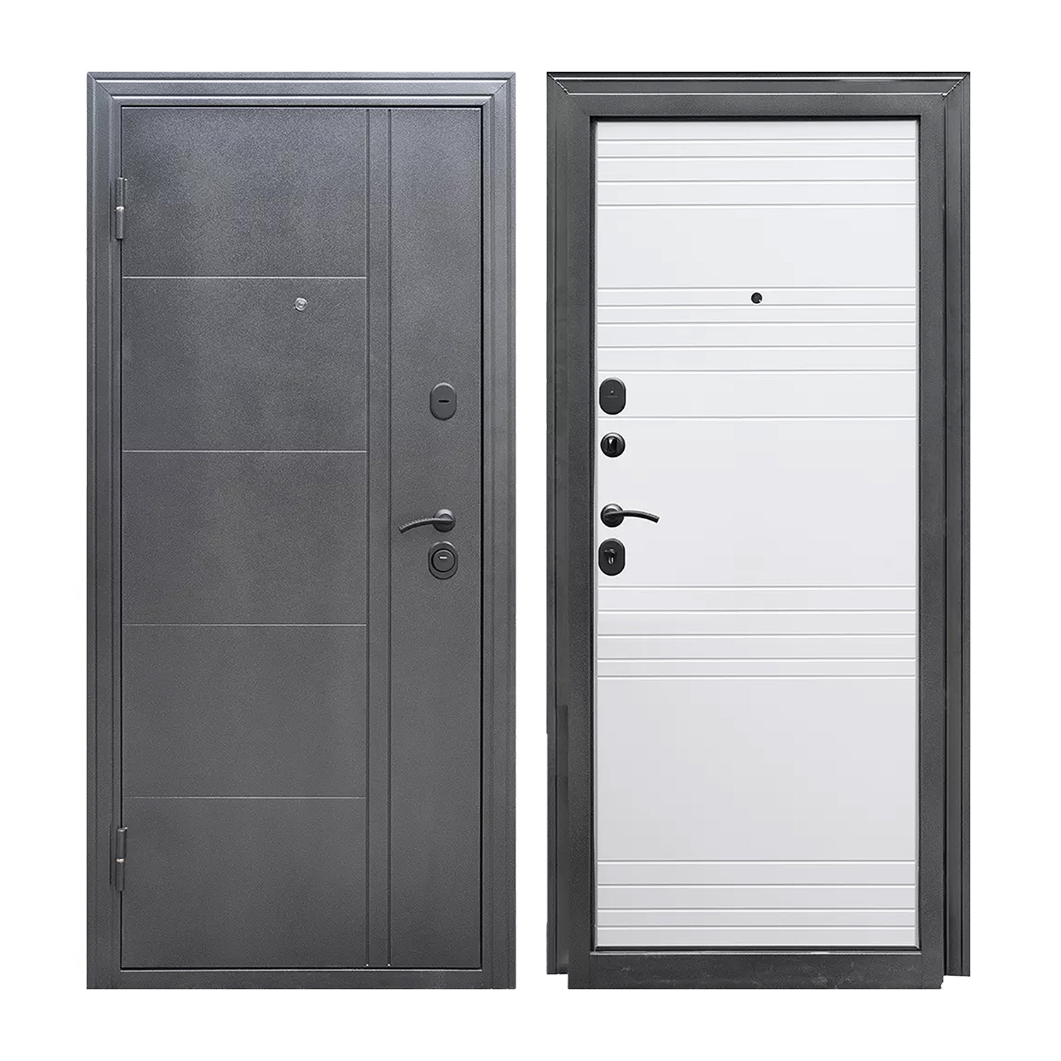 Дверное полотно, дверная коробка, замок основной, замок дополнительный, петли - 2 шт., ручки, наклад |