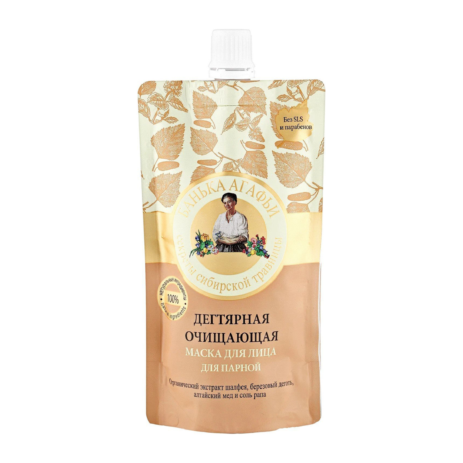 яяяПР Банька Агафьи.Маска д/лица Дегтярная очищающ.(для парной) 100 мл (дой-пак)