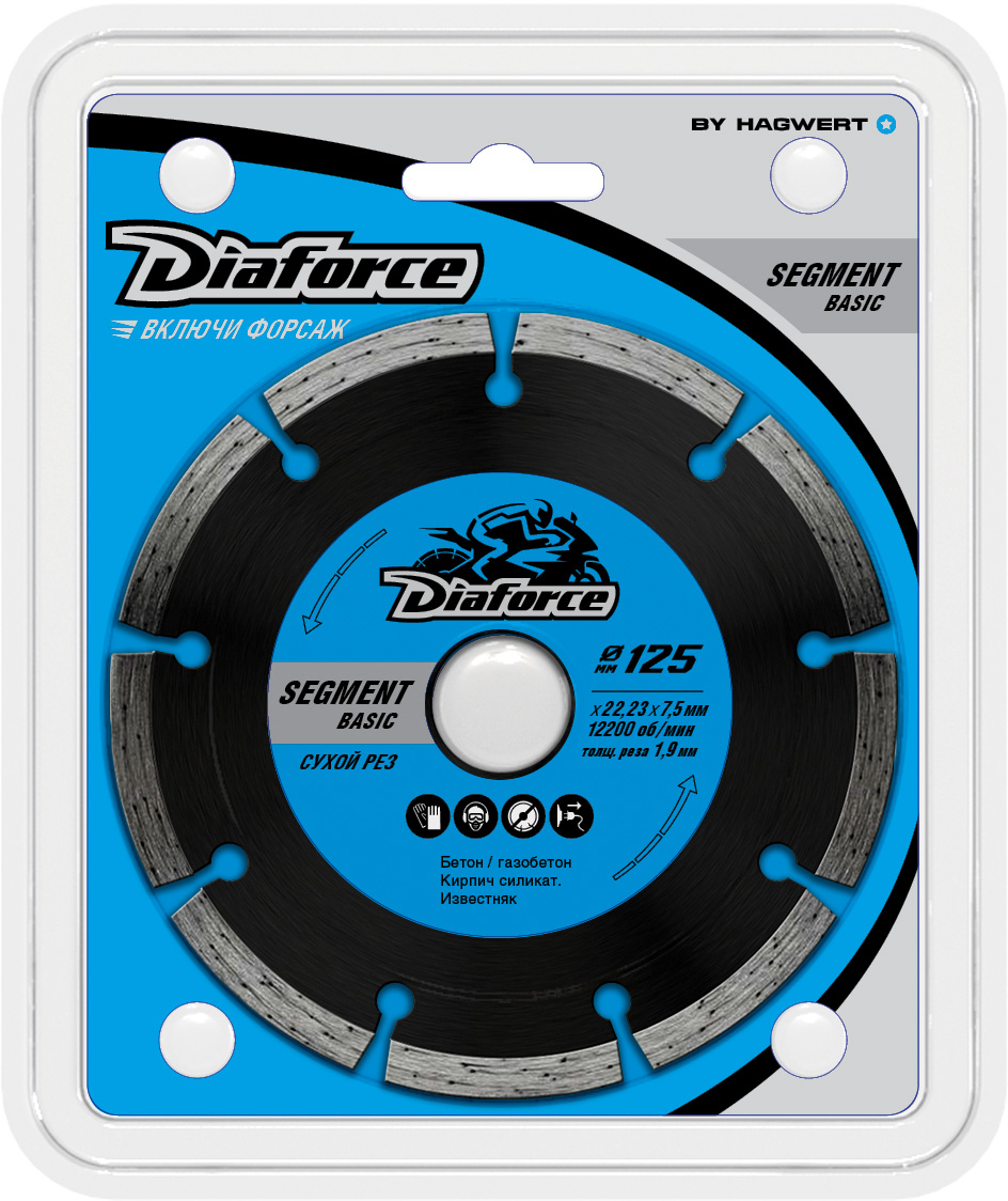 Диск алмазный 125*22,23*1,9мм по бетону/кирпич сегмент сух.рез арт.510125 SegmentBasic Diaforce*1/10/100