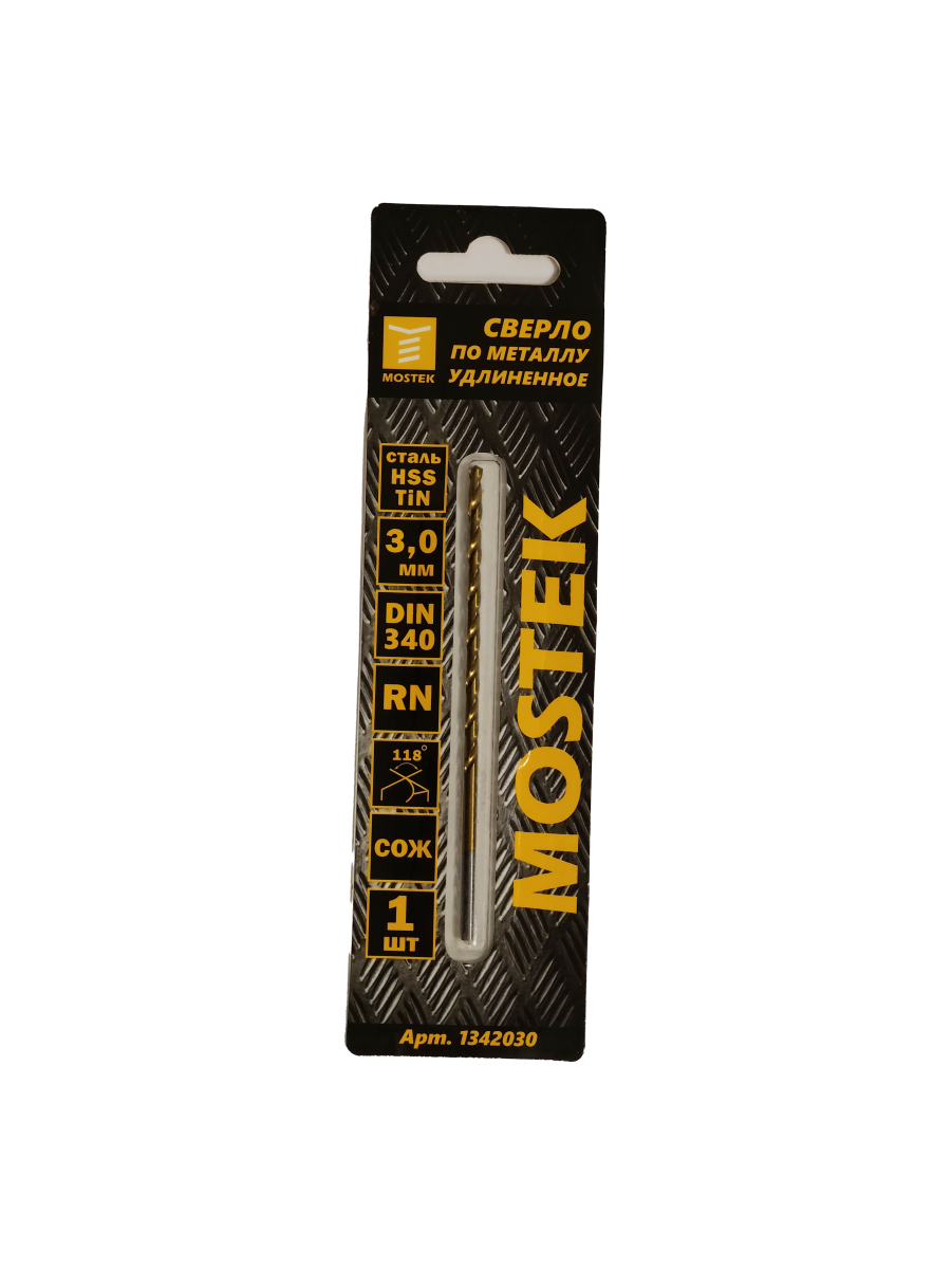 Сверло по металлу 3,0х66/100мм удлиненное HSS-TIN DIN340RN 1шт арт.1342030 MosTek*1/50/200
