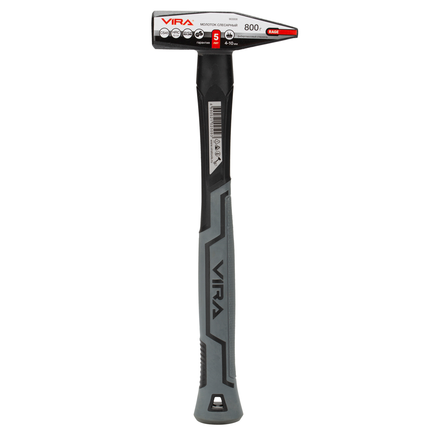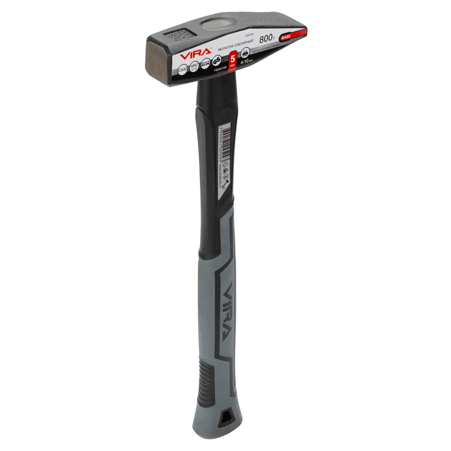 Молоток слесарный VIRA RAGE, 800 г, фибергласовая обрезиненная рукоятка