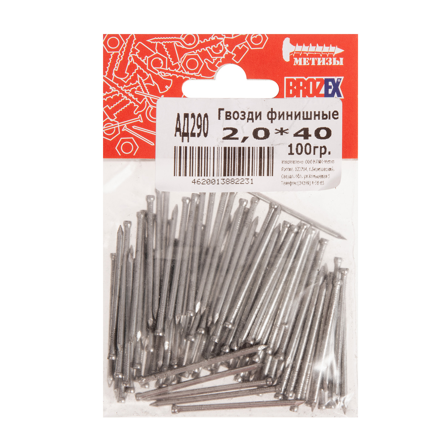 Гвозди финишные 2х40 мм BROZEX, 0.1 кг
