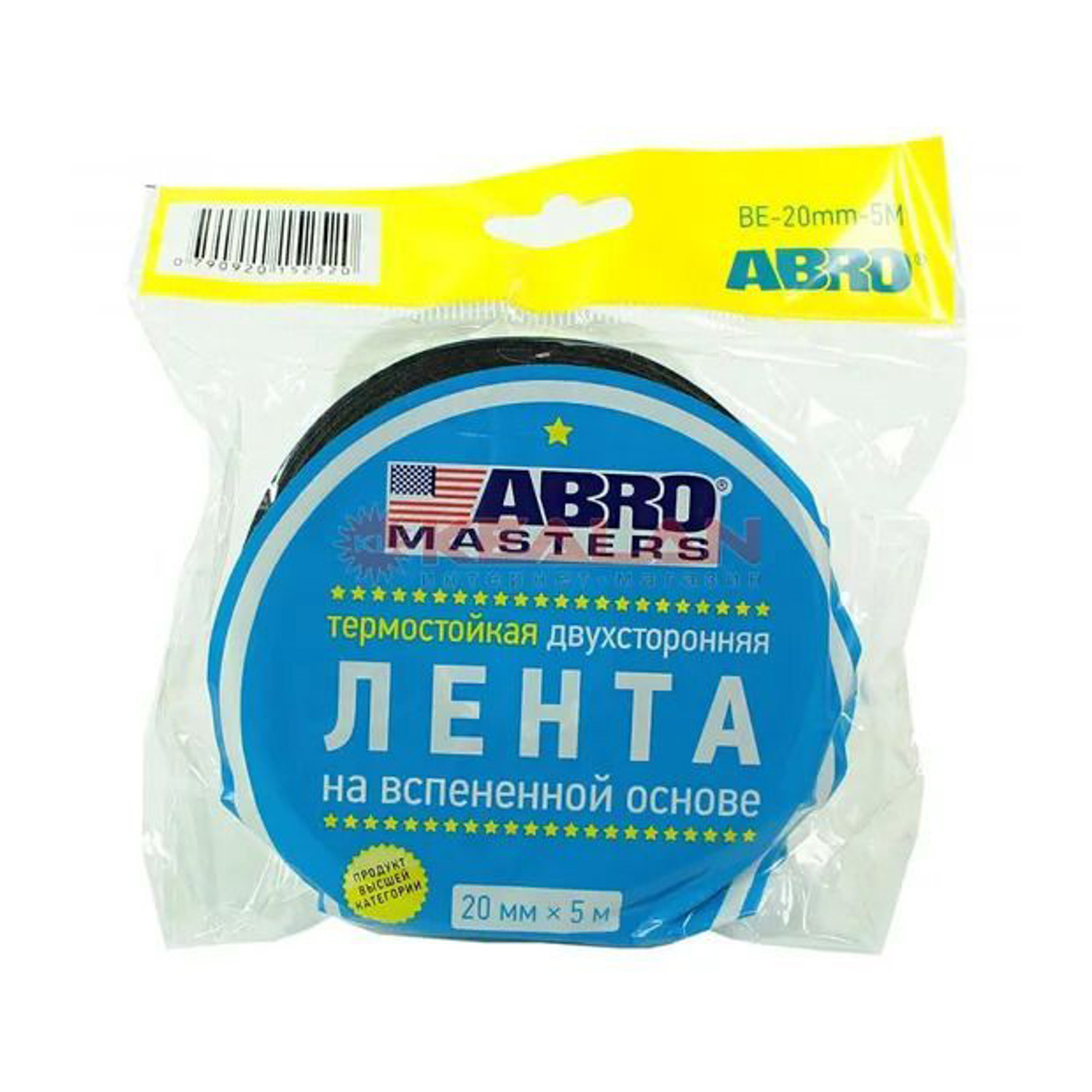 Лента клейкая двусторонняя на вспененной основе Термост. Черная 10мм х5м BE-10mm-5M "ABRO" *1/900