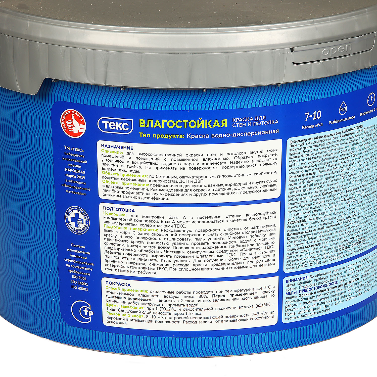 Краска акриловая для стен и потолков 9 л ТЕКС "Профи" Влагостойкая База A *1/44