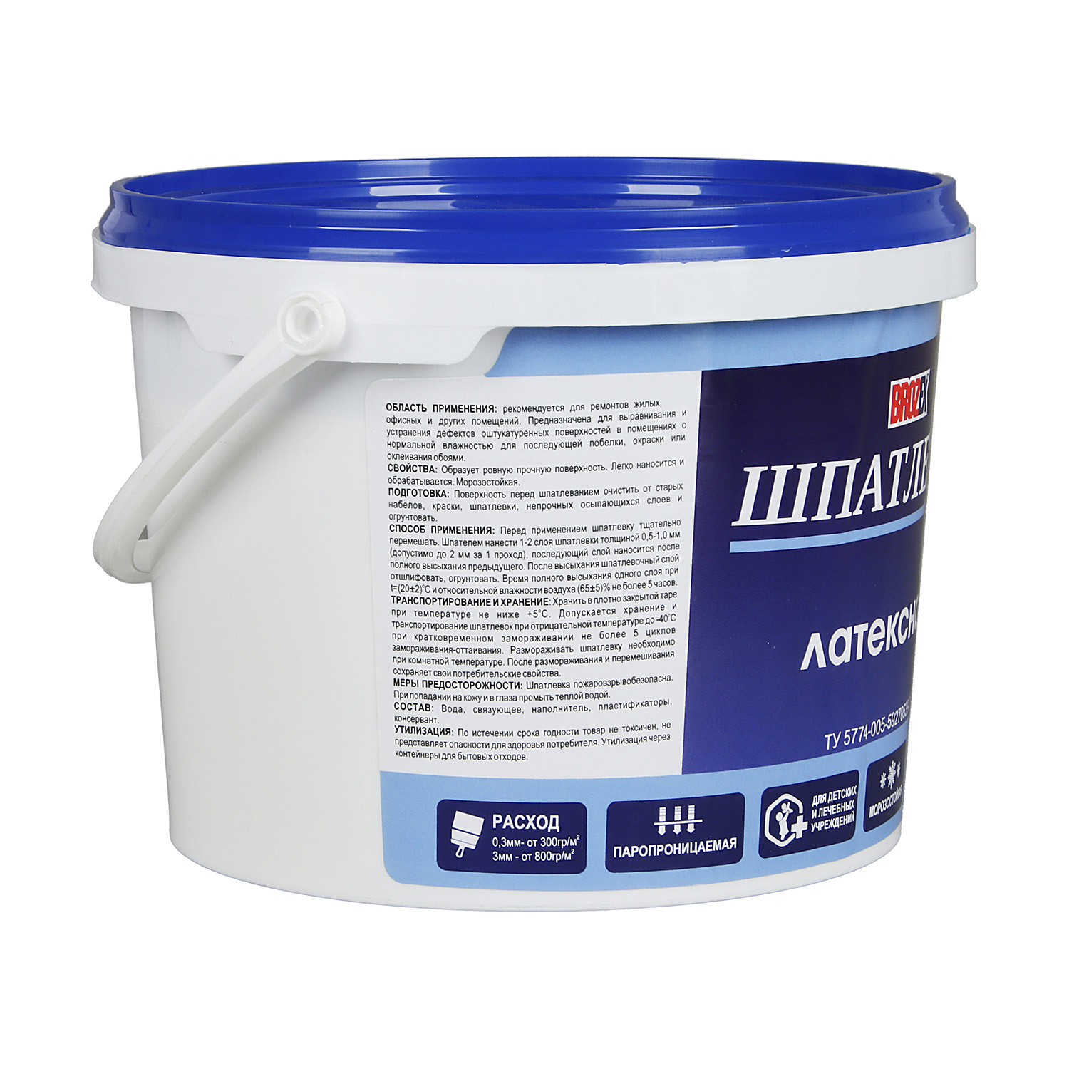 Шпатлевка латексная BROZEX 3 кг используется при ремонте жилых, офисных и других помещений. Образует ровную прочную поверхность. Легко наносится и обрабатывается.