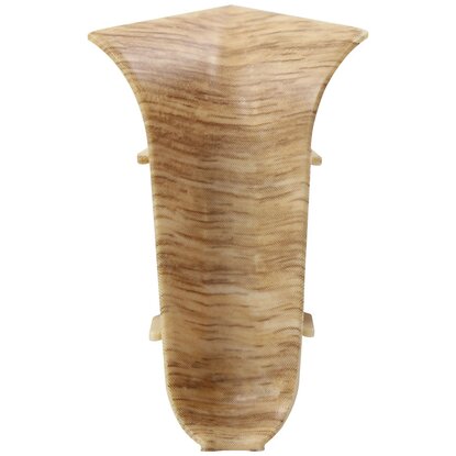 Угол для плинтуса внутренний — маскировочный и декоративный элемент, предназначенный для оформления внутренних углов помещения, в местах стыковки плинтусов. В конструкцию угла входят держатели-выемки, необходимые для надежного соединения с боковыми элементами, и накладка, обеспечивающая внешнюю эстетичность изделия. Угол выполнен из пластика, имитирующего фактуру и цвет дерева, в тон напольного плинтуса.