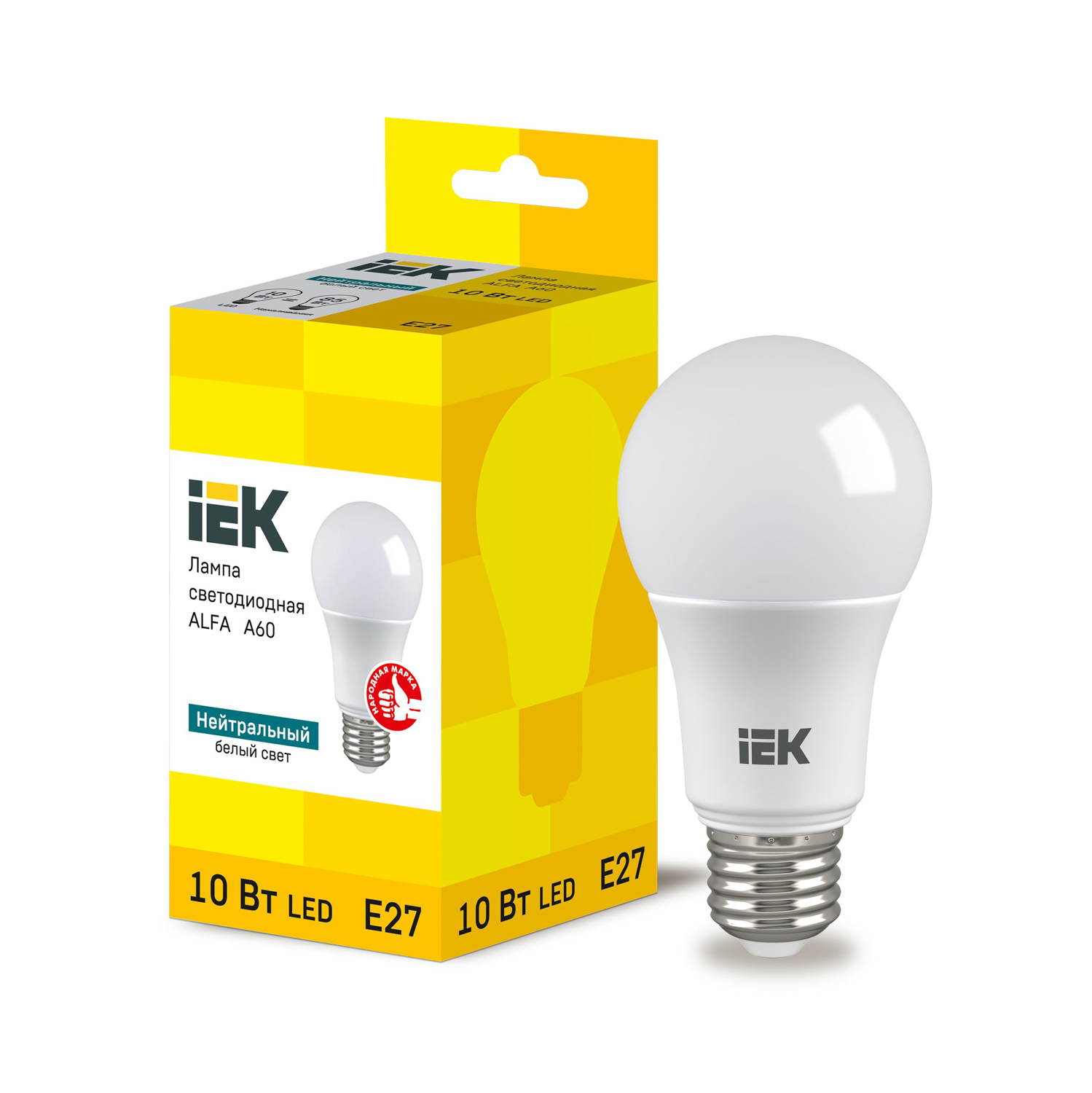 Лампа светодиодная 10W Е27 груша 4К белыйй A60 Alifa IEK LLA-A60-10-230-40-E27 *10/100