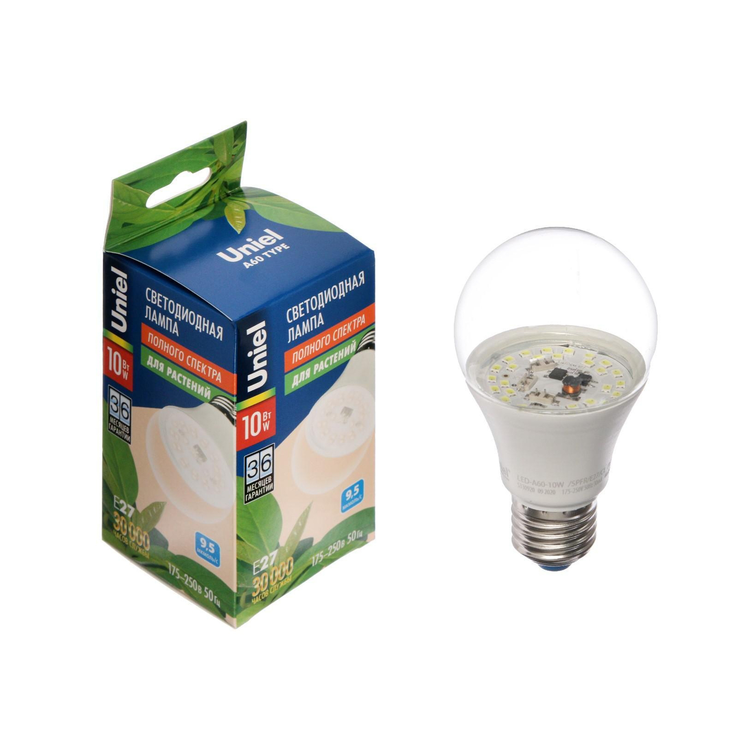 яяяФитолампа светодиодная Uniel, A60, E27, 10 Вт, IP20, 220 В, 240°, полноспектральная 2432458