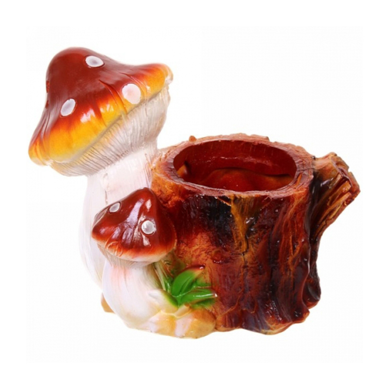 яяяФигура из гипса "Пень с грибами-кашпо" (коричневый)