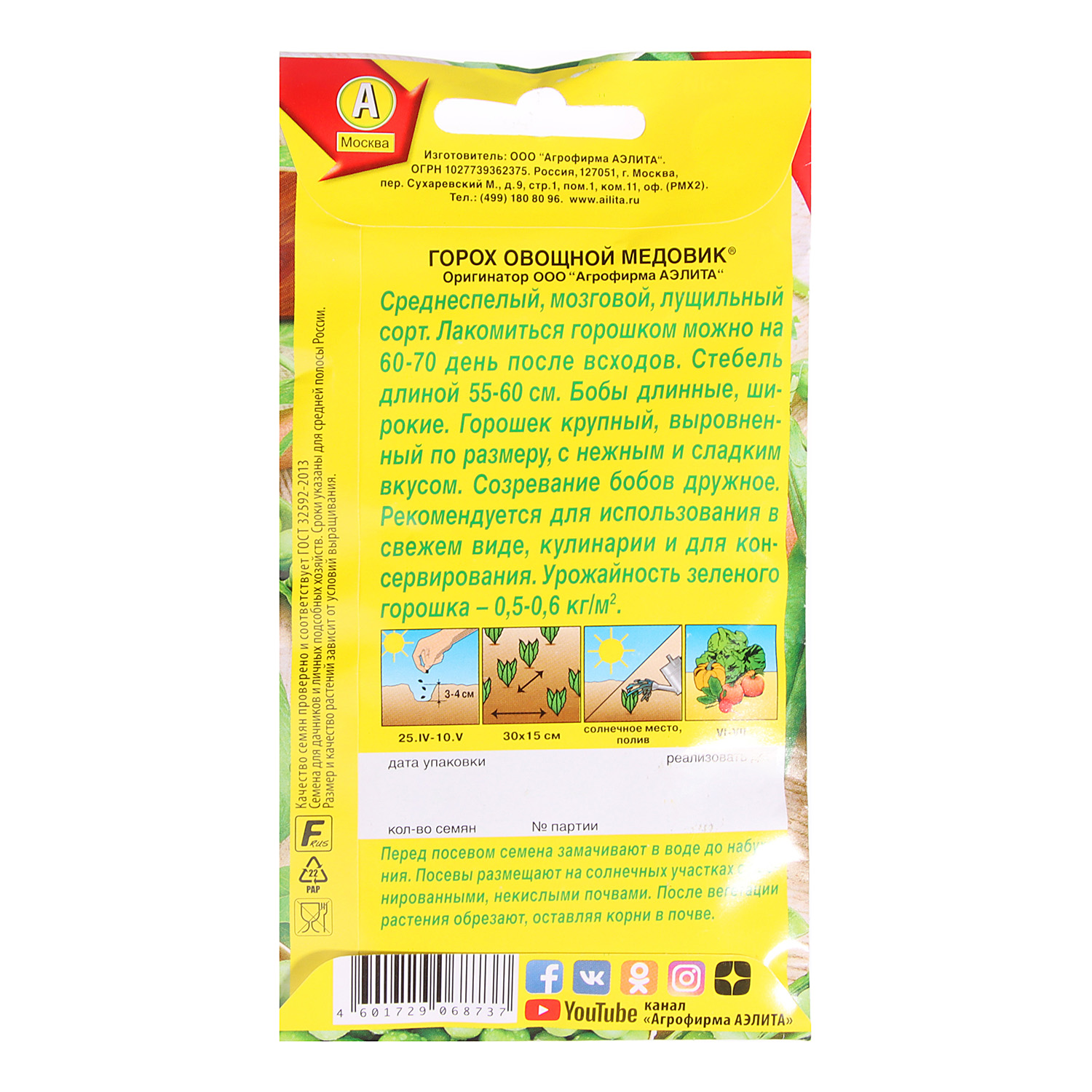 Семена Горох Медовик 10гр Аэлита цв автор *10/500