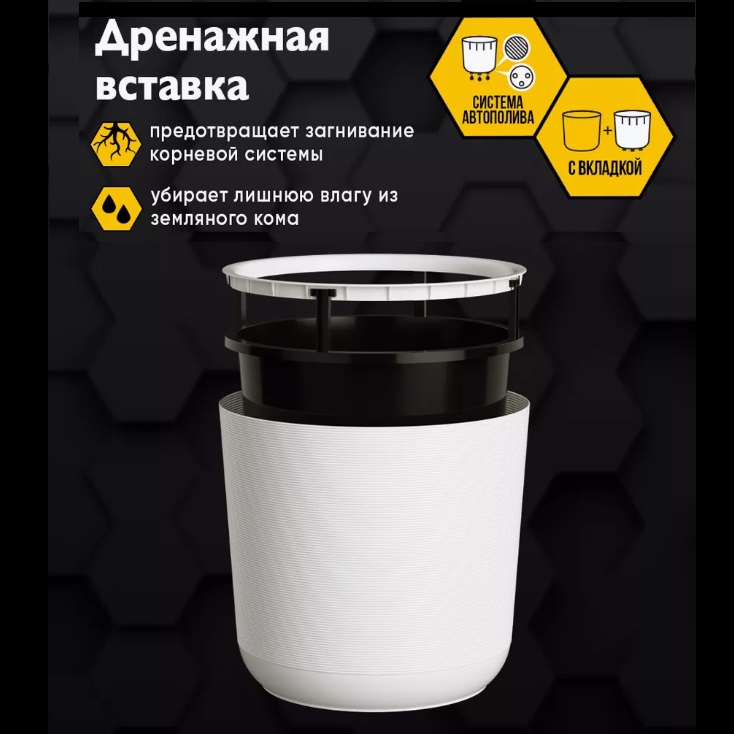 Кашпо пластм. "Лион" 16,6л d верха 300мм h300мм со вставкой 14,5л Белый ЛИ30-10*1