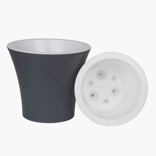 Кашпо пластм. "Сити" 1,2л d верха 150мм h130мм со вставкой Антрацит С15-12 *1/23
