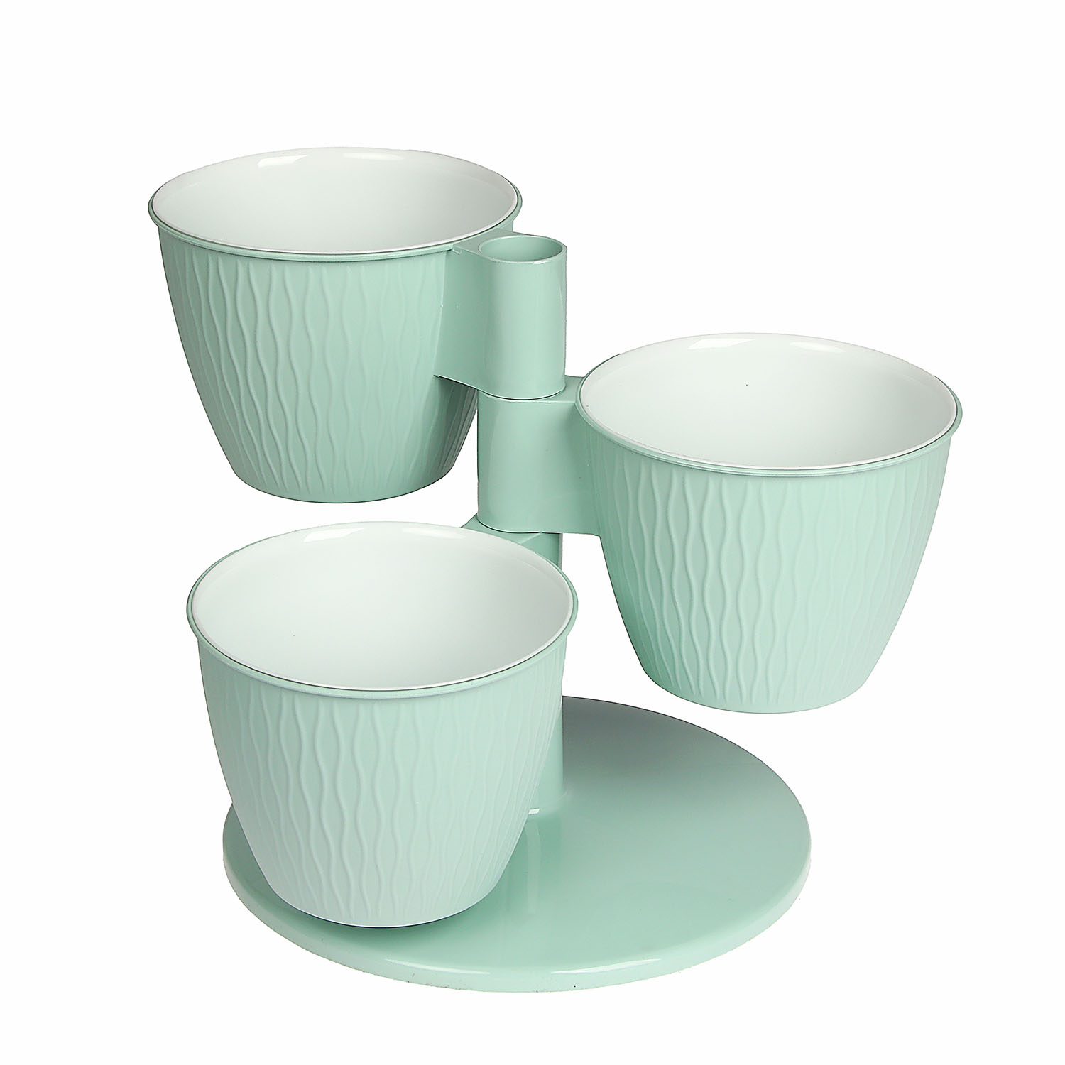 Кашпо-"Каскад" 3-х местная пластм. "Пирамида" d верха 125мм h100мм со вставками Мята *1/10
