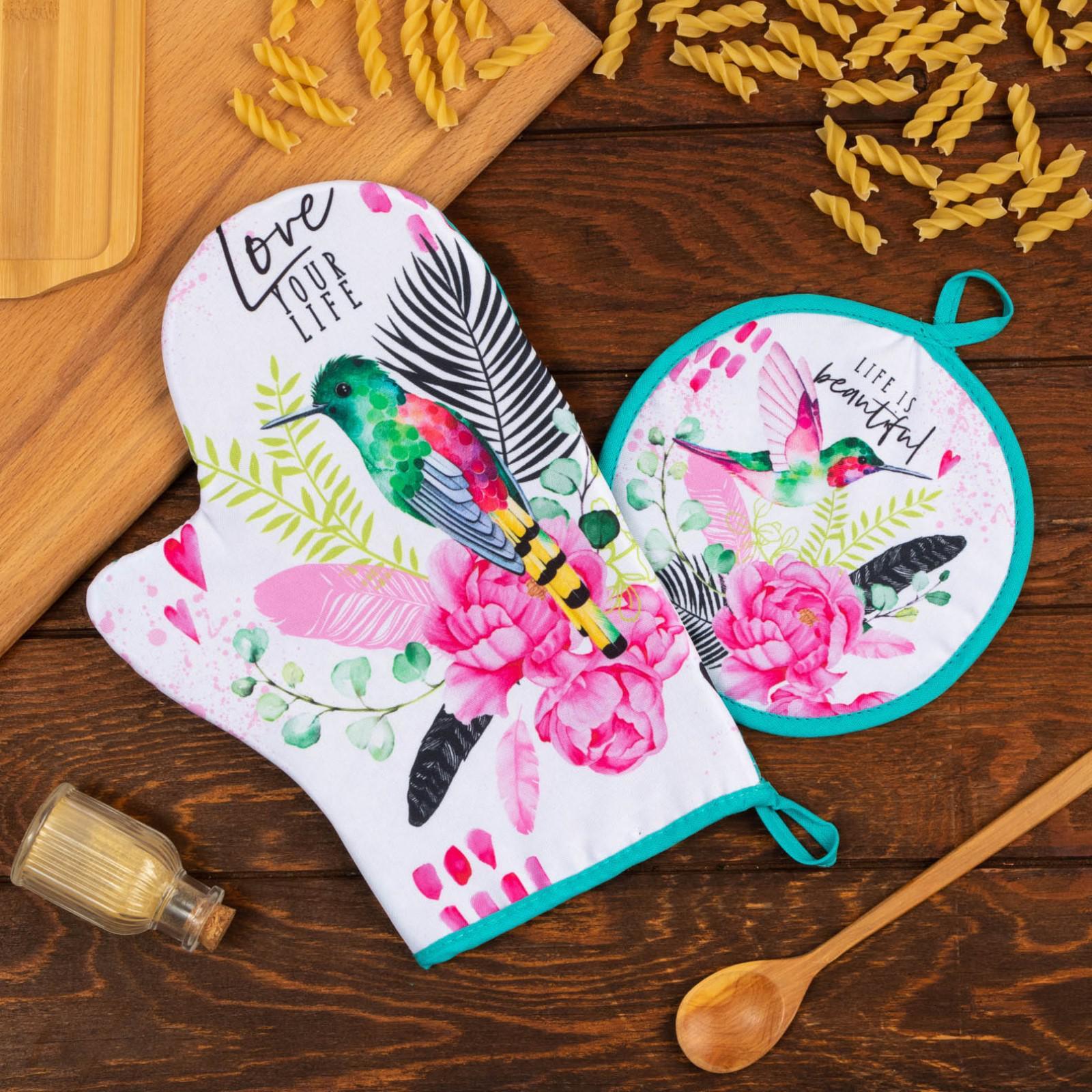Набор прихваток Love your live варежка-прихватка 20х28см, прихватка 17х17см 35% хл, 65 п/э Доляна *1