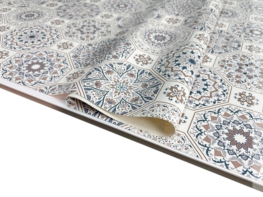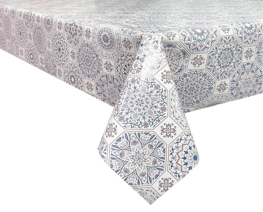 Клеёнка на тканевой основе, полиур.покр."Elegance" "Узоры" Син/Беж. ш.1,37м GW-21590 "Great Way" *20