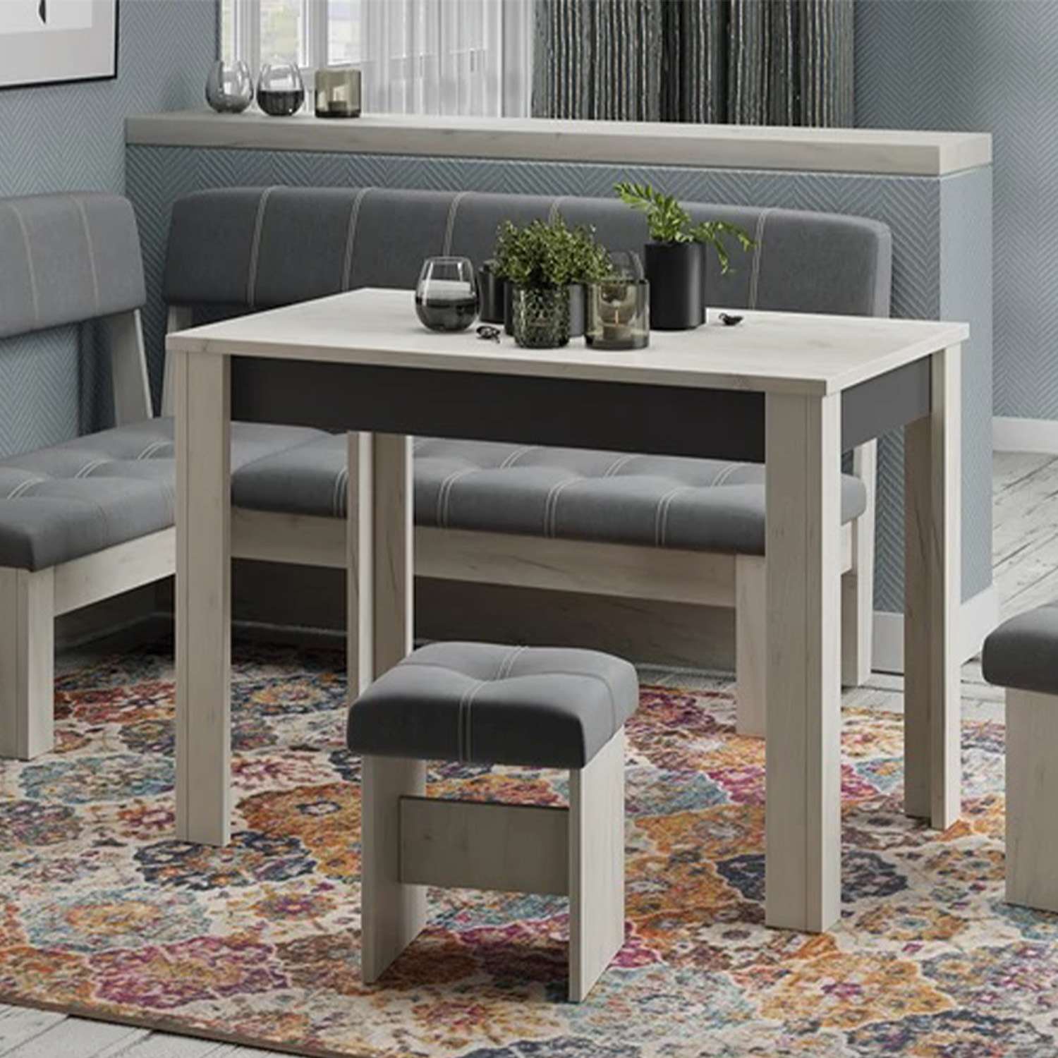 Кухонный уголок Альфа 1.534x1.134xh840 Дуб Крафт белый, Антрацит/Велюр Серый*1