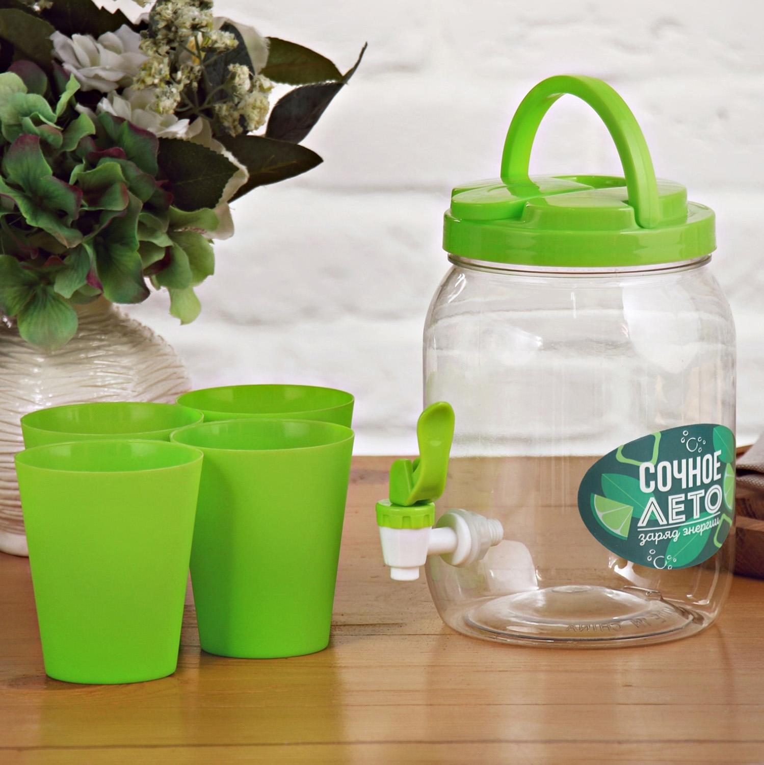 яяяНабор "Сочное лето", бочка для лимонада, 4 стакана   4135226