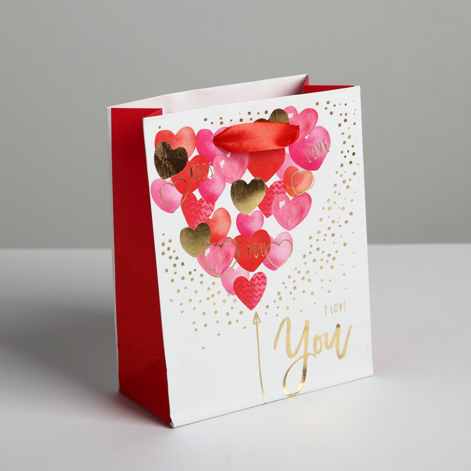 Пакет подарочный ламинированный вертикальный «I love you», S 12 x 15 × 5,5 см   4479154