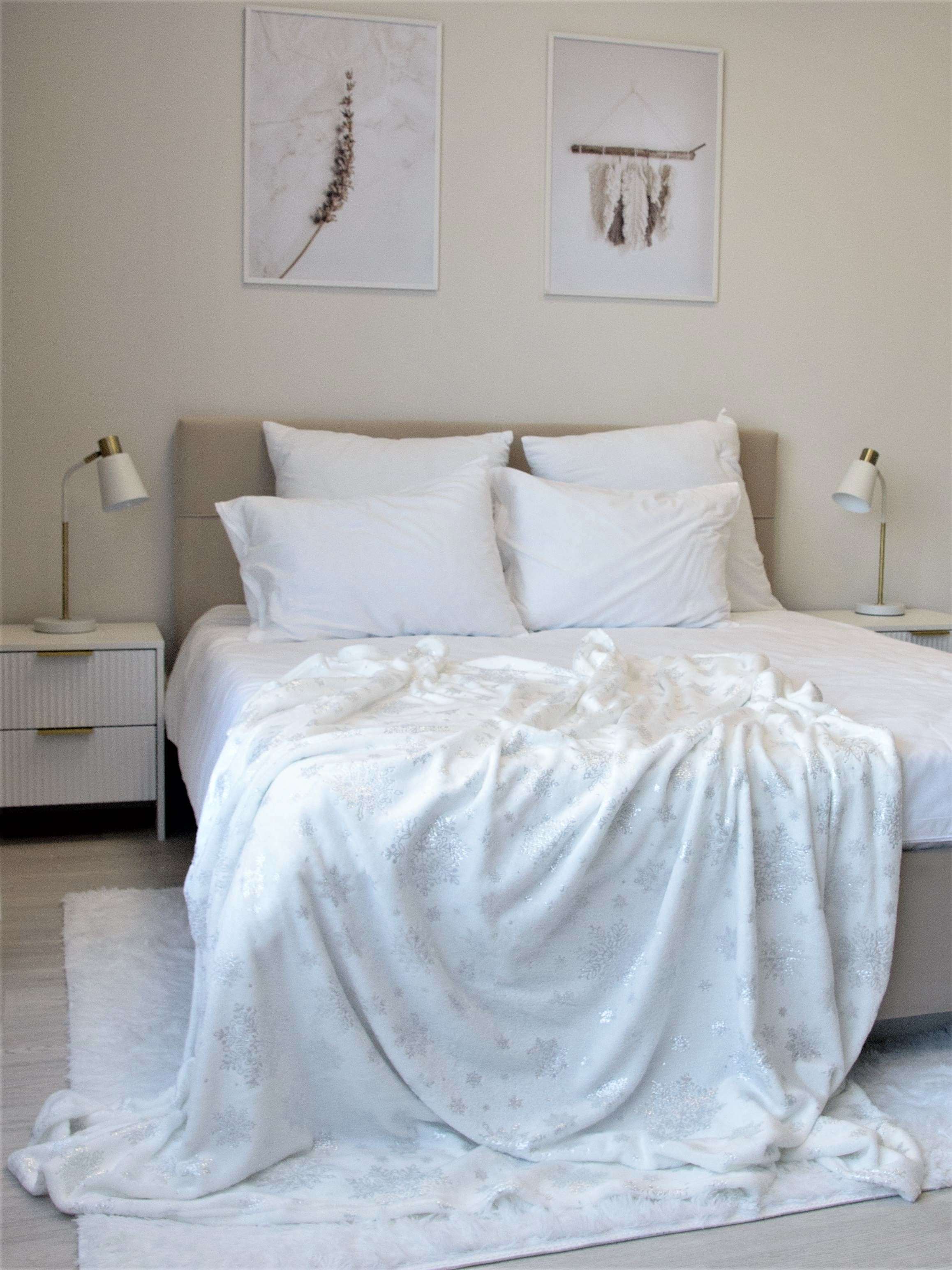 Плед 180*200см микрофибра Снежинки серебро Belezza *1