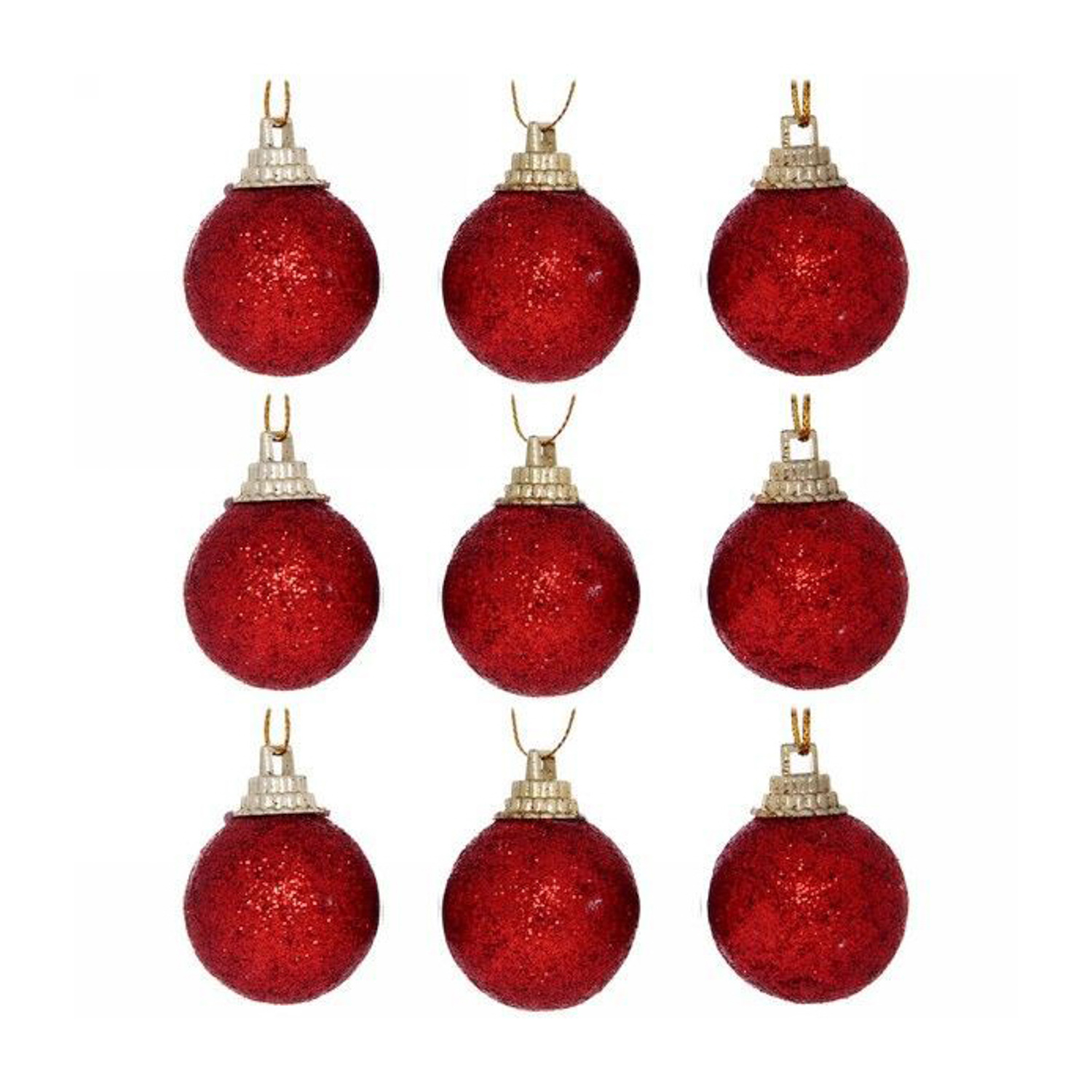 Новогодние шары 3 см "Посыпка из блёсток" набор 9 шт, красный