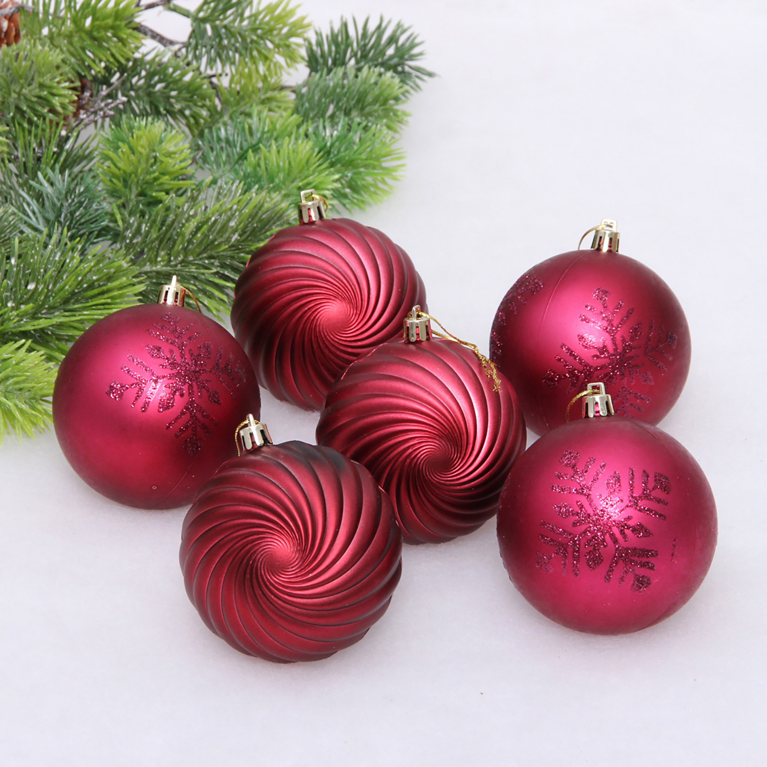 Новогодние шары "Изящные узоры" 8 см (набор 9 шт), Рубин