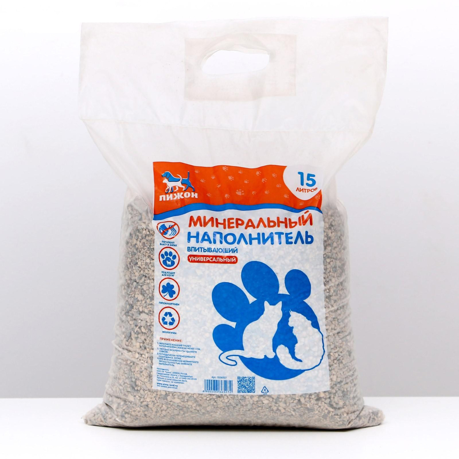 Наполнитель минеральный впитывающий "Пижон" универсальный, 15 л 3336527