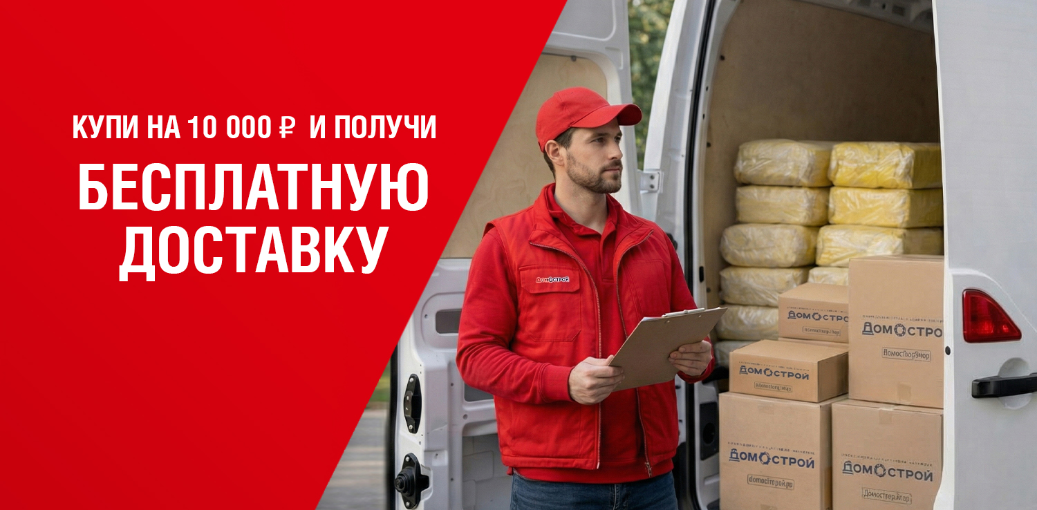 При совершении покупок на сумму от 10 000 руб. в розничном магазине ДомоСтрой и на сайте tobolsk.domostroy.shop действует бесплатная доставка в черте города. Вы можете выбрать подходящую дату, доступную при покупке товаров, и в течение назначенного дня мы привезем товар с 9:00 до 19:00.