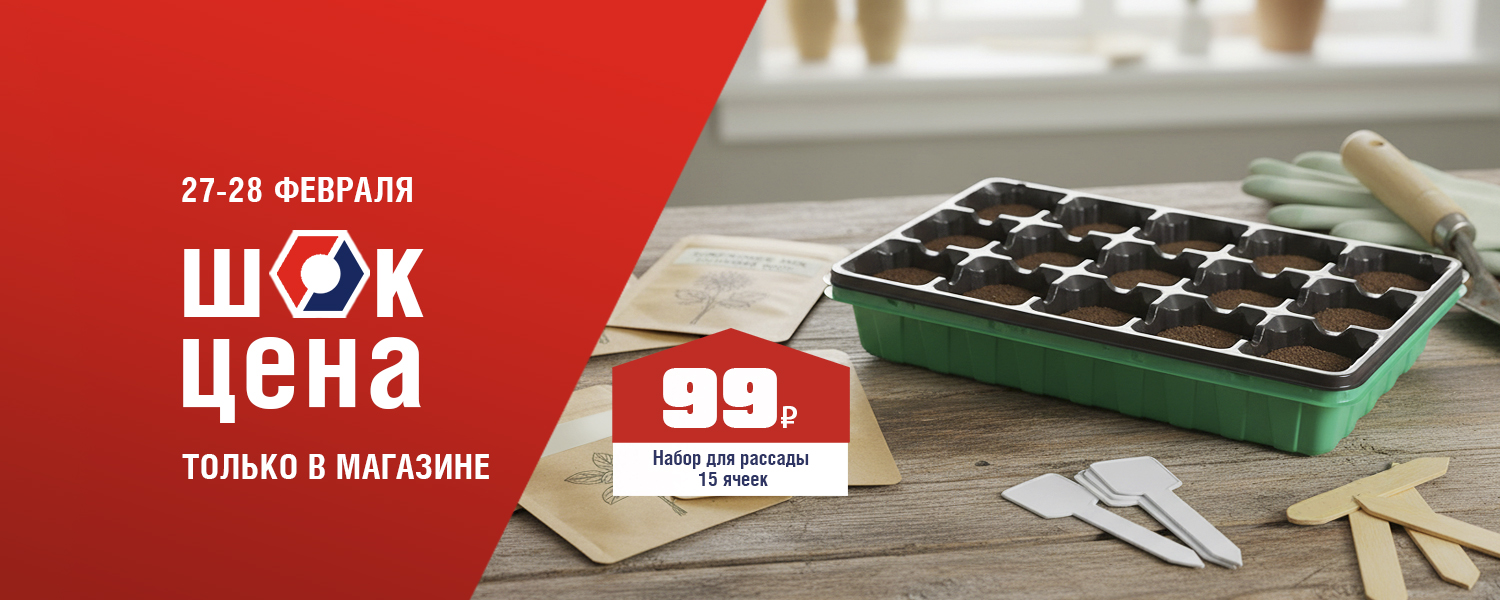 Количество товара по акционной цене ограничено. Акция действует 27.02.2026 и 28.02.2026 г. в розничных магазинах ДомоСтрой. Акция не суммируется с бонусами, промокодами и другими акциями (в том числе со скидкой по дисконтной карте, скидкой для пенсионеров и акцией для новоселов). Акция действует только для физических лиц, на юридические лица скидка не распространяется.